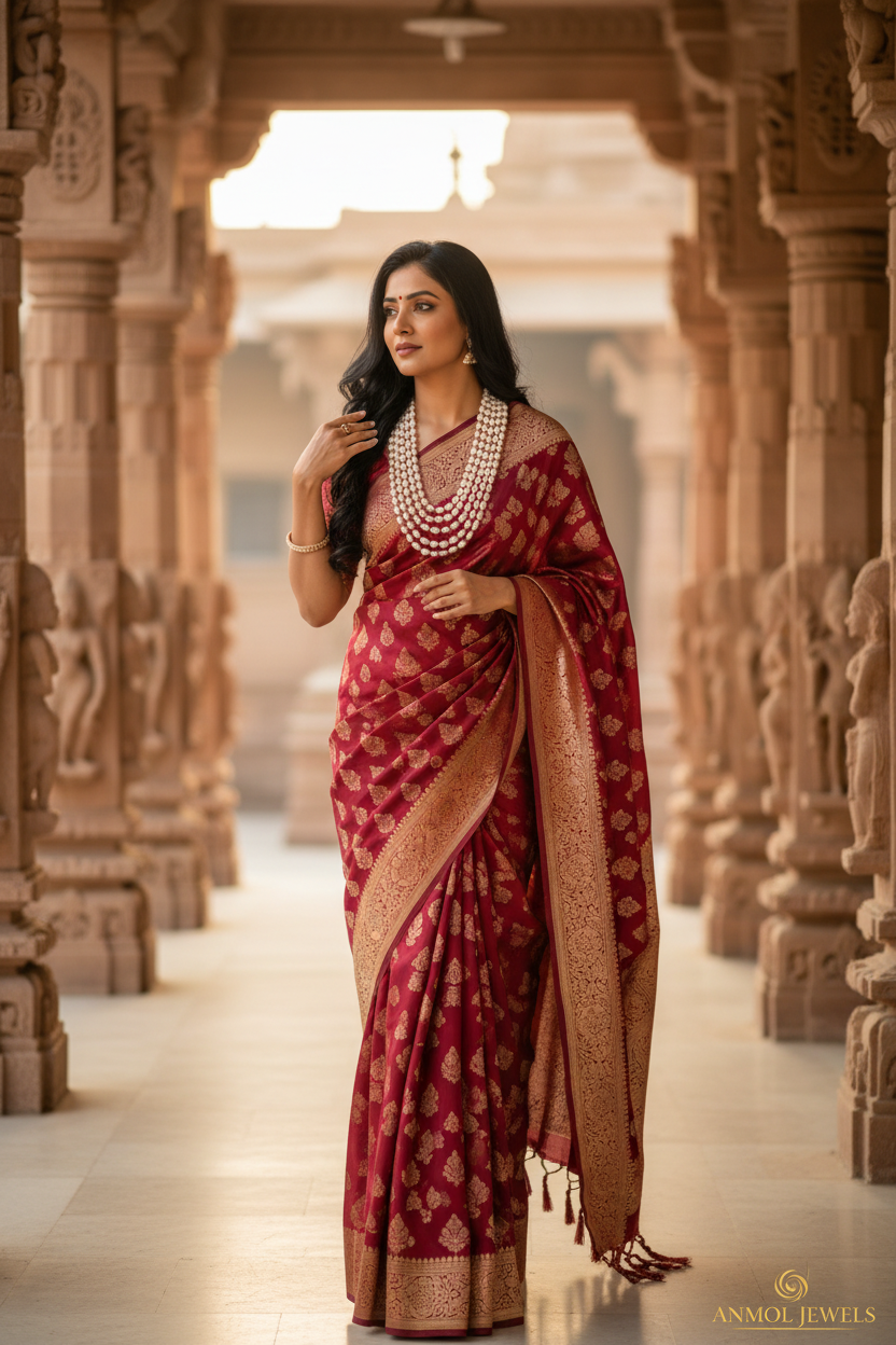 Make a striking impression with this five-layered pearl statement necklace, expertly designed to elevate any ensemble. Each cascading strand features lustrous pearls that create dimensional depth and sophisticated movement. The multi-layer construction offers versatile styling—wear it as a bold focal point for evening occasions or layer it with your everyday pieces for refined elegance. Perfect for those who appreciate timeless jewelry craftsmanship with contemporary flair. An investment piece that transcends seasonal trends and complements both classic and modern wardrobes.