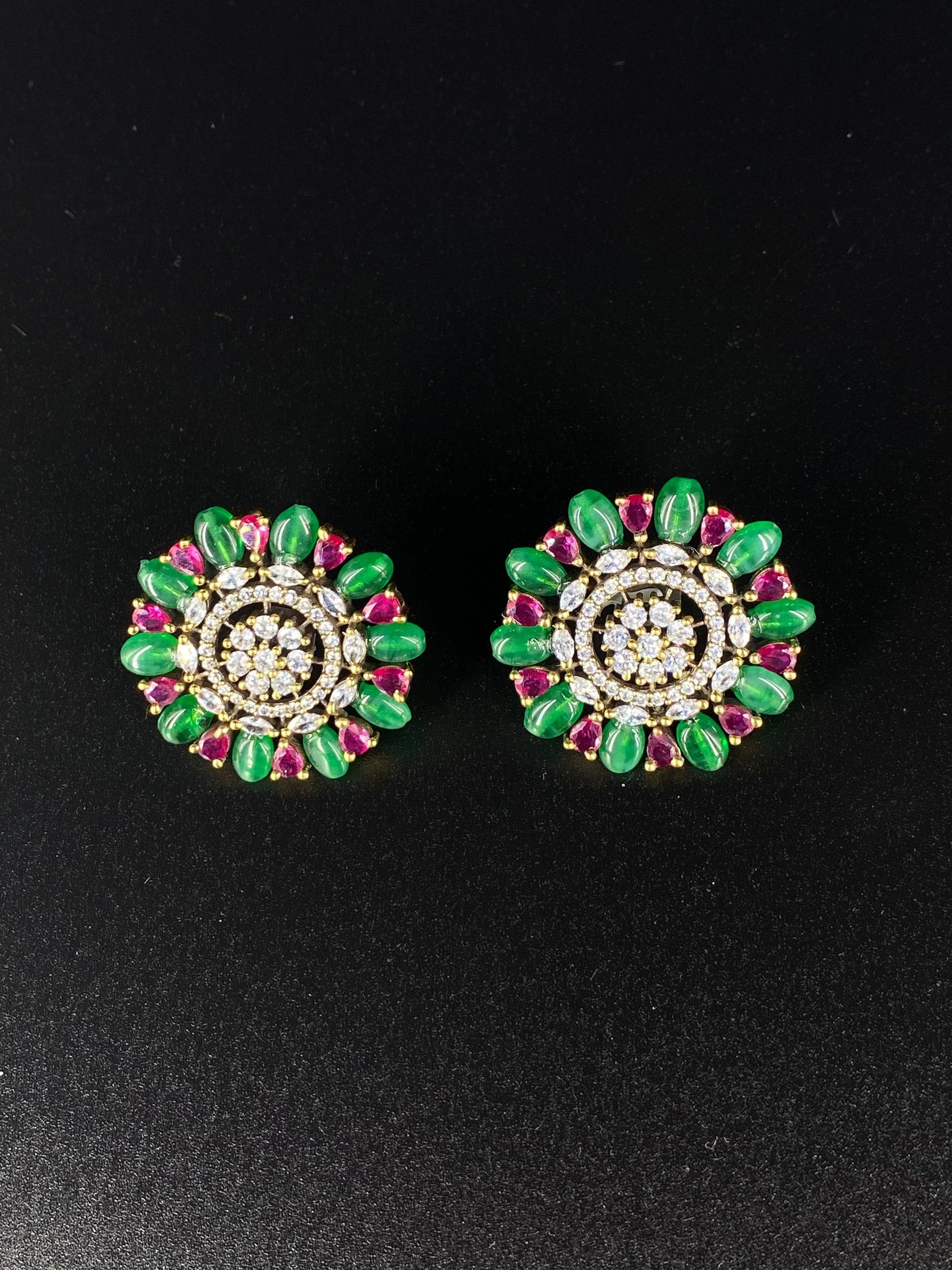 Discover a unique and elegant addition to your jewelry collection with our UYIR GREEN WITH PINK KUNDAN STUDS. Made from high-quality materials, these studs feature a stunning green and pink color combination that will add a pop of color to any outfit. Perfect for any occasion, these studs will surely make a statement.